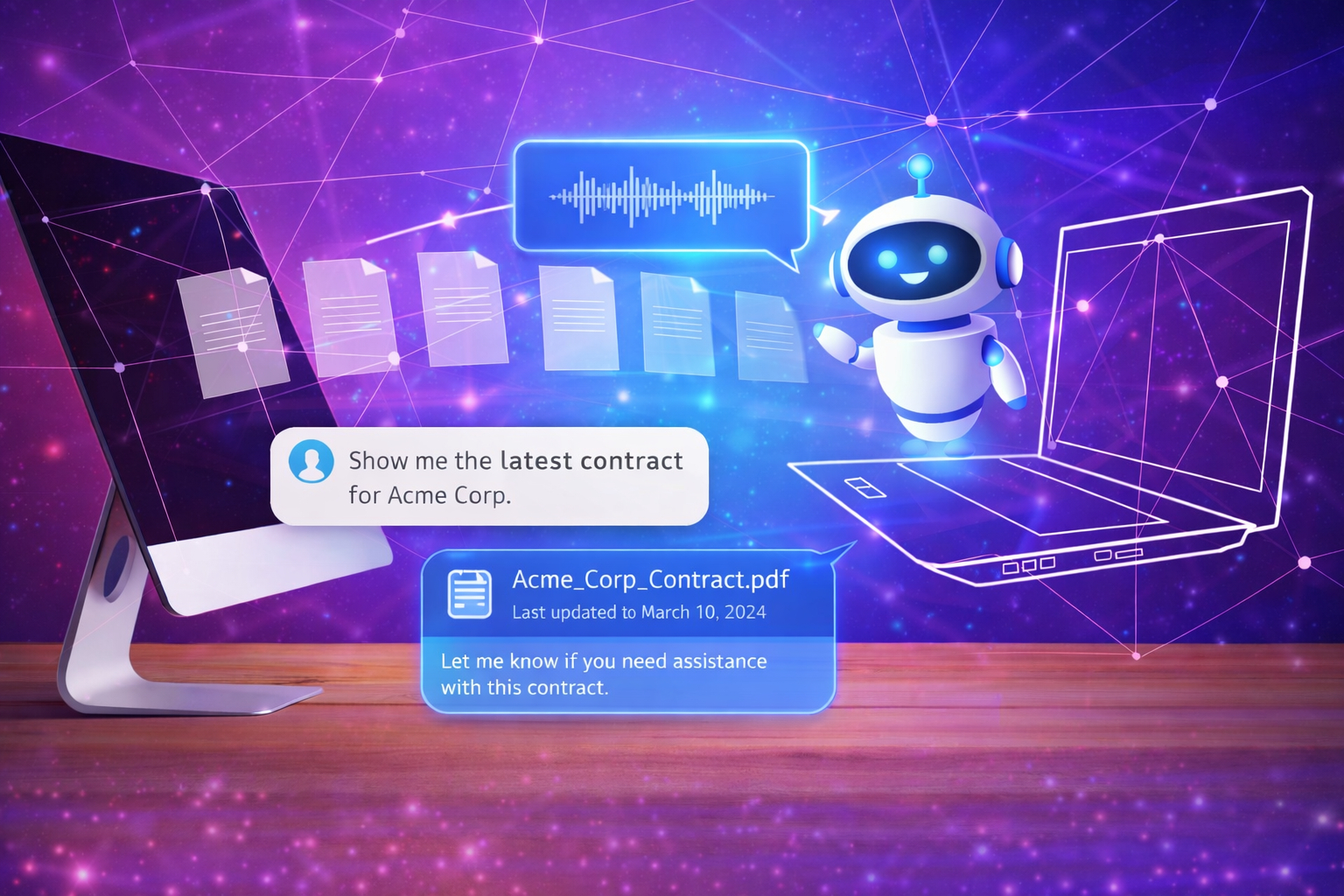 Leverage chatbot capabilities powered by NLP and ML to facilitate intuitive document interaction and information retrieval. The chatbot supports natural language queries, entity recognition and context-aware responses.
