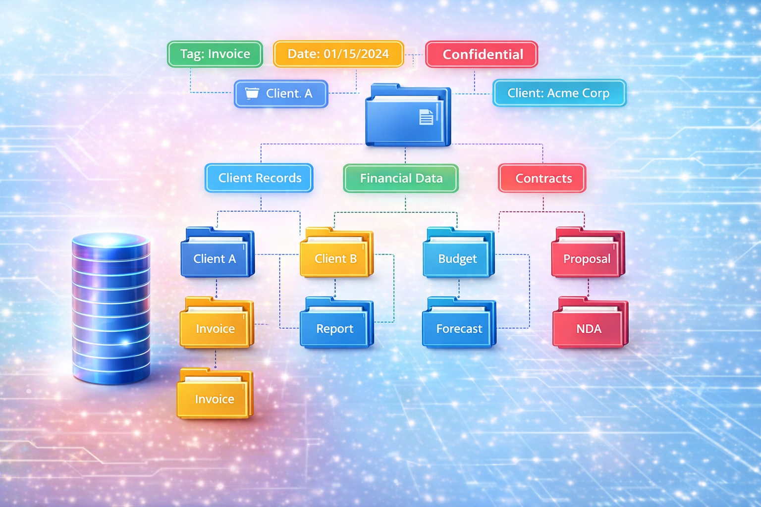 Establish hierarchical folder structures and taxonomies aligned with organizational needs, utilizing metadata-driven classification and storage. The system supports automated folder creation and metadata-based routing.